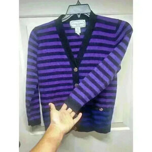 VTG adrienne vittadini cardigan Lambswool angora Purple Striped Sweater Size P