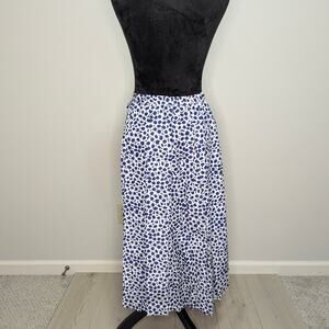 VTG bleyle sz 12 blue n white pattern semi circular pleated maxi skirt teacher