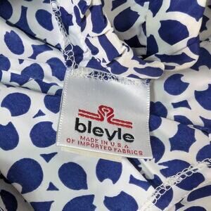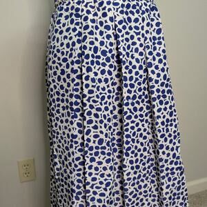 VTG bleyle sz 12 blue n white geometric pattern semi circular pleated maxi skirt