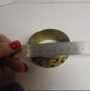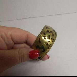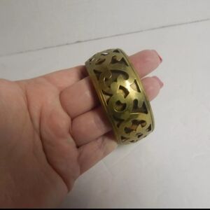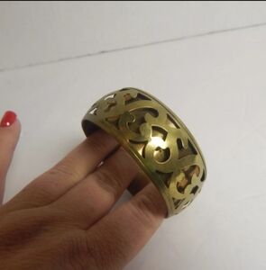 VTG brass boho etched reticulated floral bangle bracelet. India festival 70's