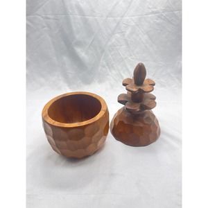 Vintage 2 piece carved wood pineapple decor. Pineapples hold a lot of meanings, for a lot of people. Welcome people to your home with this tropical beauty! You can put lots of treasures into this pineapple!! This is in outstanding condition. See pictures for measurements.