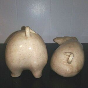 Cute and beautiful glazed Vintage Pot Belly Flat Nosed Set of 2 baby pigs/piggies/piglets Figurines Statues Sitting position.