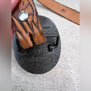 VTG childs Award Design Medals brass buckle, calf roping, w/ tooled leather belt