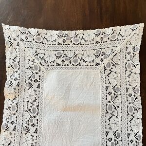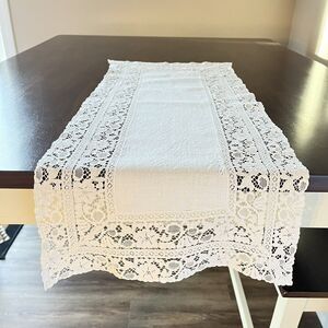 VTG cotton Linen Table Runner Dresser Scarf Intricate Lace Cottage Core 13 x 32