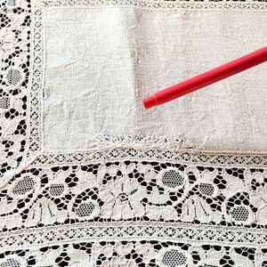 Vintage Ivory cotton Linen Table Runner Dresser Scarf Intricate Lace Border