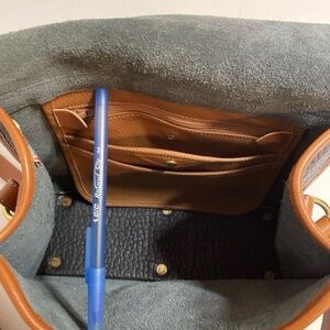 This vintage dooney & bourke all weather leather crossbody purse in nice condition with very little wear. Pictures show a mark on the leather slide closure & button closure on back show slight ring creases and wear around the hole. Adjustable strap with side fob brass logo. If any questions, please ask. Inside tag Dooney & Bourke, Inc. Made in USA. No #’s.