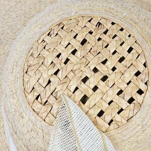 Vintage 1950s era finely woven straw ladies straw hat with vented open weave crown.