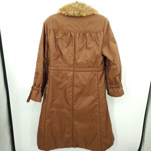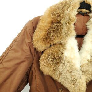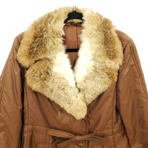 VTG 1970s fleet street Rabbit Fur Collar Belted Nylon Insulated Trench Coat L/XL Brown, GUC with light wear, no apparent flaws. Vintage tag size 14; fits like a modern 10/12/L/XL. See measurements below to ensure a good fit.