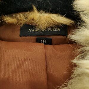 VTG fleet street Rabbit Fur Collar Belted Nylon Insulated Trench Coat L/XL