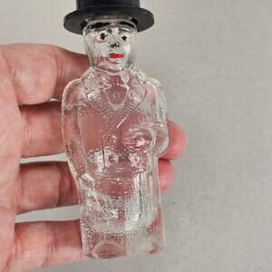 VTG glass perfume bottle man in tophat tux cane flower bouquet 3.5 x 1.5