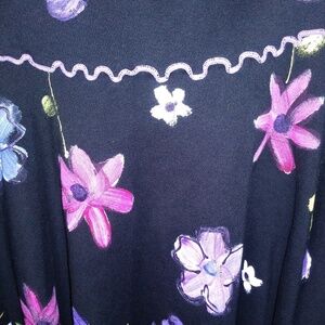 VTG hand painted skirt Knit NWOT Handkerchief hem purple trim flare stretch
