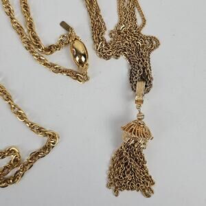 VTG lot of 2 gold tone long chain link necklaces marked
