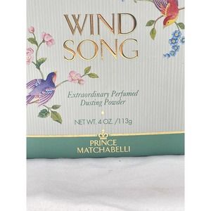 Vintage original formula fragranced Wind Song body powder. By Prince Matchabelli. 4oz. Please see ingredient list. This the original talc based formula.