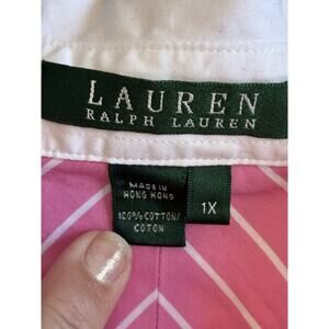 This vintage Ralph Lauren Pink Stripe Button Down Shirt in size 1X is a classic piece perfect for any wardrobe. With a preppy style and a slimming fit, this shirt features a collared neckline, long sleeves, and a button closure. Made from breathable fabric, it is suitable for various occasions including travel, casual outings, and business events. The pink and white stripes add a feminine touch to the shirt, making it versatile for all seasons. Ideal for plus size women looking for a stylish and comfortable top option.