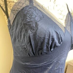 VTG romantic Navy blue slip dress chemise neglige lingerie cottagecore