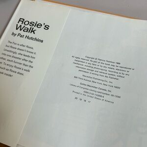 - Hardcover story about a chicken who goes on a walk and the fox that follows her. Approx measures: 8” x 10” | Very good vintage condition, has slight vintage book smell.