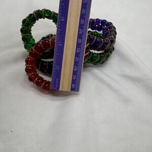 Vintage set of 6 glass bead napkin rings. These are beautiful jewel tone colors and are in excellent condition. They have some gold wire as accents.