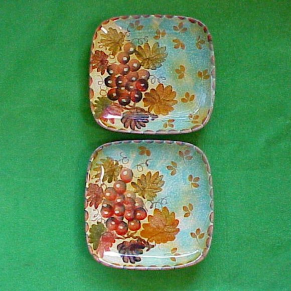 VTG set of handpainted in Italy Square Serving Fruit Wine & Cheese plates 8.5"