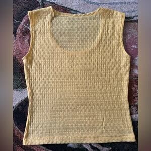 Vintage 90s sheer stretchy top. Yellow with intricate pattern to add textural value to your fit. No tags. I’d call it a medium. Approximately 17.5” pit to pit but it can really stretch. Approximately 20.5” in length.
