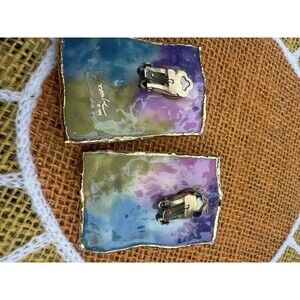 VTG signed 1988 Amy Lacombe designer blue green Clip On Earrings
