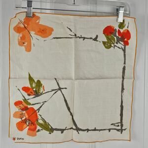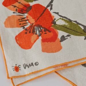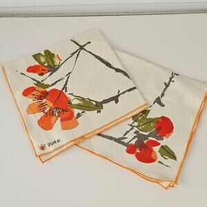 VTG two 1970s orange floral butterfly Vera linen napkins 16 x 16