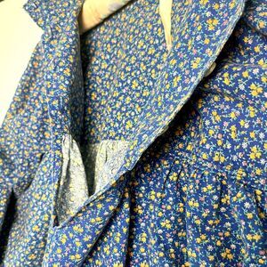 VTG unbranded LAURA ASHLEY Style Blue Tent Smock Dress Ditzy floral poppies Med