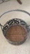 VTG wrought iron wicker woven bottom basket with butterflies, dragonfly, leaf