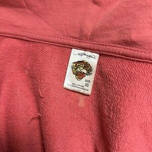 VTG y2K ED HARDY CHRISTIAN AUDIGIER PINK OMBRE CRYSTAL ZIP UP HOODIE