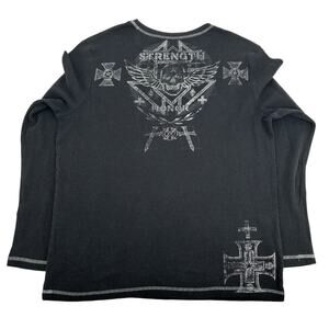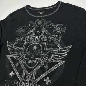 Vintage y2k Men's Black White No Boundaries Strength Honor Skull Skater Thermal Waffle Knit Long Sleeve Shirt XL