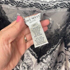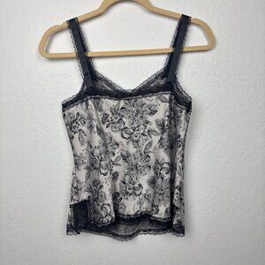 VTG y2k Nine West 6P S Floral Lace Trim Camisole Black White Layering Whimsigoth