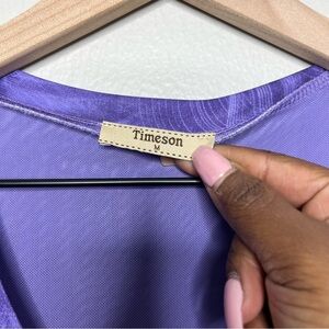 VTG y2k Timeson Women Top Medium Purple Fairy Mesh Whimsical Layered Ethereal