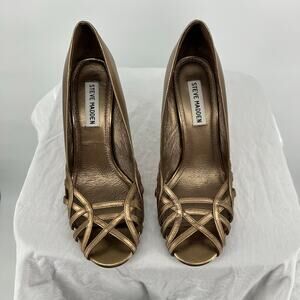 Vintage y2k Women's Summer Bronze Gold Leather Upper Steve Madden Donatela Stiletto Heels Sz 6.5M
