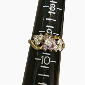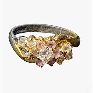 Very pretty vintage cocktail ring by lind, it has a lovely ameythyst flower in the center with a CZ Diamond in the center, other CZ accent stones on a Gold plated setting.Lots of pretty sparkle, Size 9.5. Please see all photos for full description.