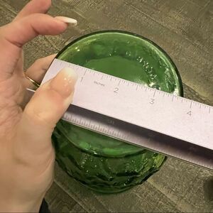 VTG 1960s Crinkle Glass Emerald Green Round Vase