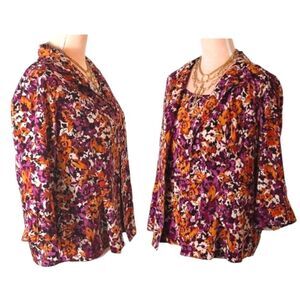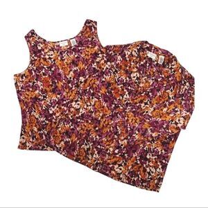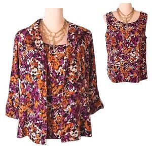 VTG 2 Piece Fall Printed Cottagecore Sleeveless Blouse and Jacket Set Large P