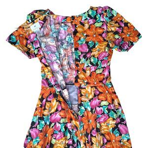 VTG 80s Bright Floral Bloomcore V Waist Midi Dress Size 12 *Fits like Med