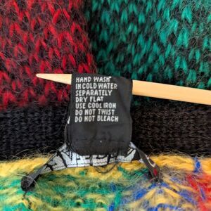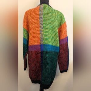 Description: VTG 80s Claudia D. Mohair Preppy Academia Cozycore Maximalist Cardigan Sweater MD, button front, vibrant colors throughout