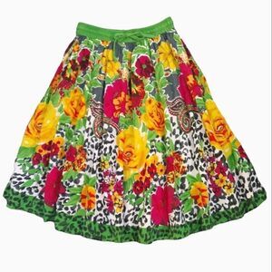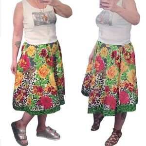 VTG 80s Colorful Floral Animal Prints Full Cotton Midi Skirt *fits like Medium