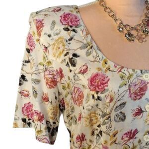 VTG 80s Cream Pink Floral Cottagecore Prarie Button Down Midi Dress Medium