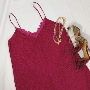 VTG 80s Fuscia Pink Textured Floral Tank Midi Slip Dress Large