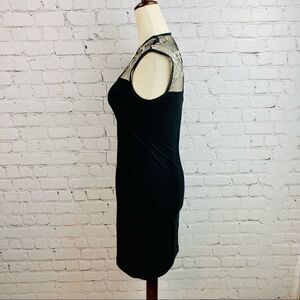 VTG 80s Fredericks of Hollywood Stretch Bodycon Mesh Embroidered Sheath Dress