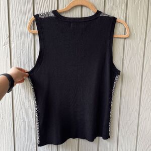 VTG 90s Silk Blend Knit Vest Petite Sophisticate S/M MOP Buttons Black White