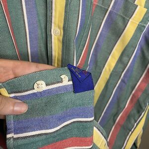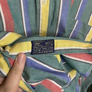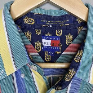 VTG 90s Tommy Hilfiger Striped Button LS Shirt Crest Embroidery Men’s Medium 80s