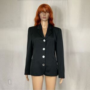 VTG Alan Austin Women's Black 100% Wool Classic Blazer Jacket Italy Size Small