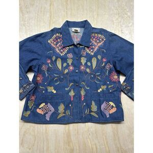 VTG April Cornell Women’s Jean Jacket Embroidered Sz L Gorgeous Flowers Leaves