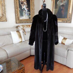 Barth Wind Stunning Genuine Dark Brown Shiny Mink Fur Coat Full Length in size L/XL.Minks on this fur coat are in perfect condition , initials on its lining has been removed. Fantastic deal great buy🌸