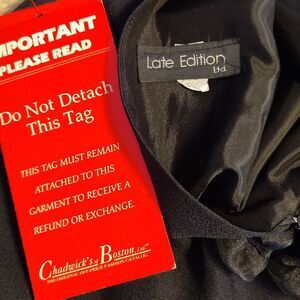 VTG Black Low Back Rosette Midi Sheath Dress Deadstock Size 14 *Fits like Large