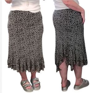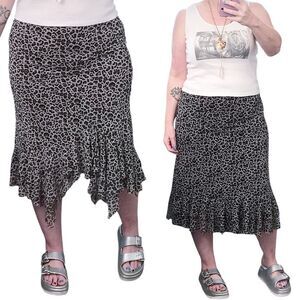 VTG Black White Leopard Pull On Ruffled Midi Slip Skirt *Fits Like Medium