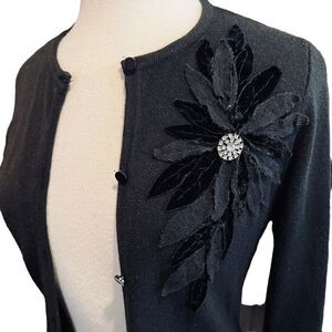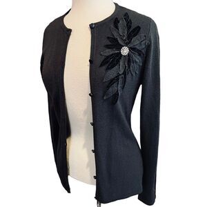 VTG Black Cardigan Sweater W/exclusive Decorations Rhinestone Brooch size S