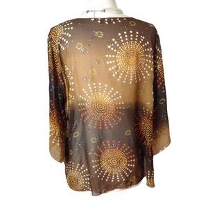 VTG Brittany Black Womens Retro Blouse XL Brown Sheer Chiffon LS Flair 60s Natur